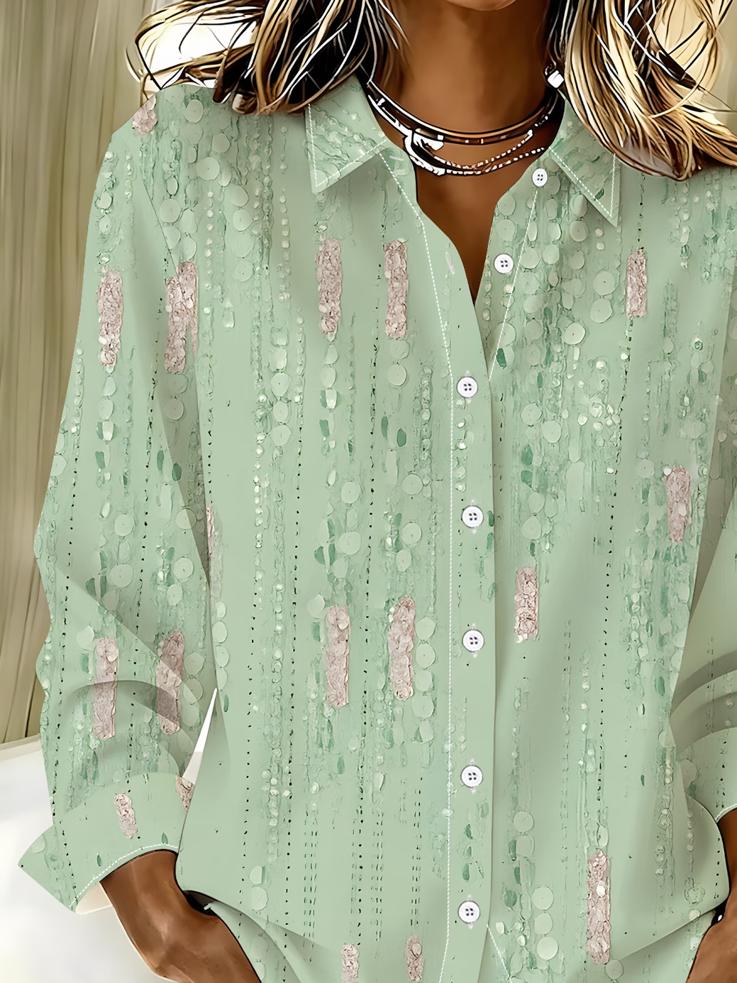 Women's Long Sleeve Shirt Spring/Fall Green Abstract Buckle Shirt Collar Daily Going Out Casual Top