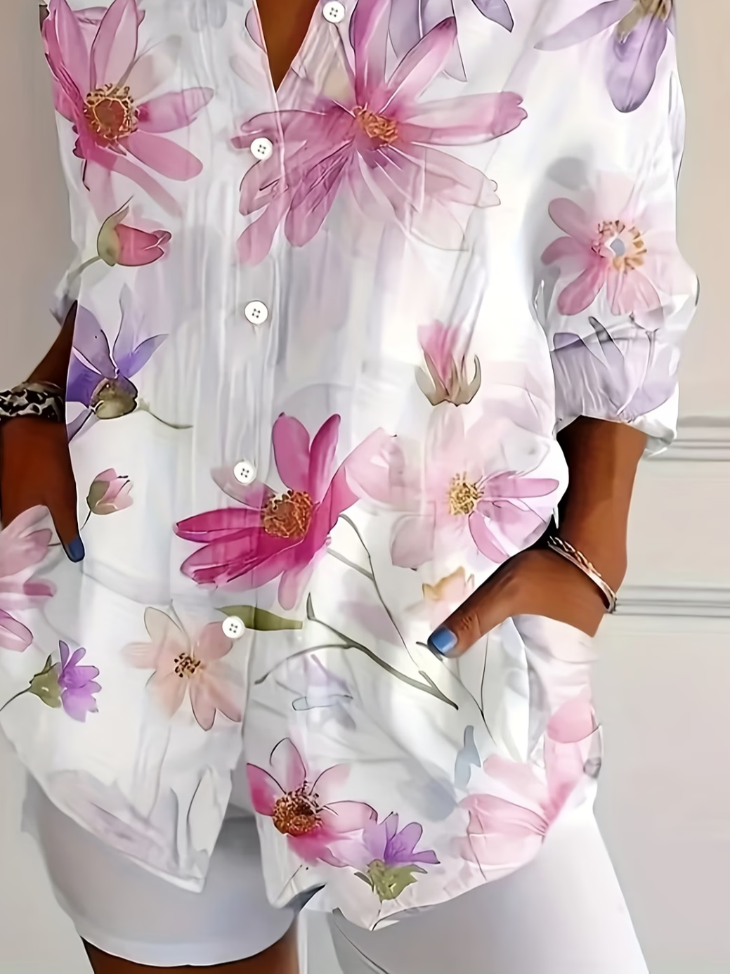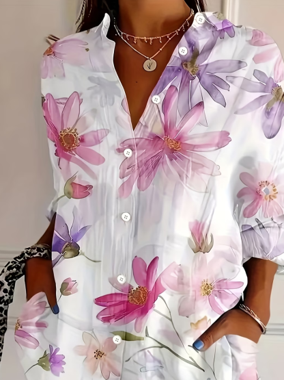 Women's Long Sleeve Shirt Spring/Fall White Floral Buckle Shirt Collar Regular Sleeve Daily Going Out Casual Top