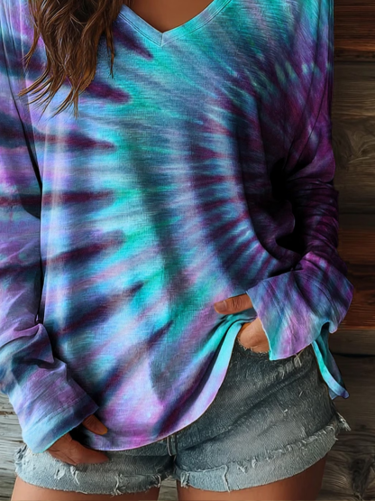 Women's Long Sleeve T-shirt Spring/Fall As Picture Abstract Printing Jersey V Neck Daily Going Out Casual Top