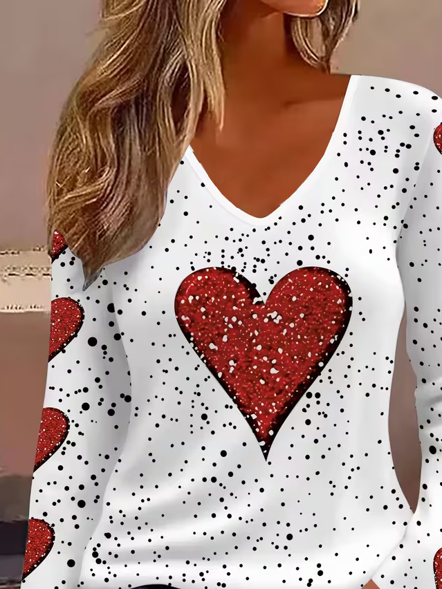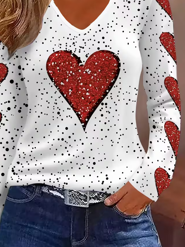 Women's Long Sleeve T-shirt Spring/Fall White Heart/Cordate Printing Jersey V Neck Daily Going Out Casual Top