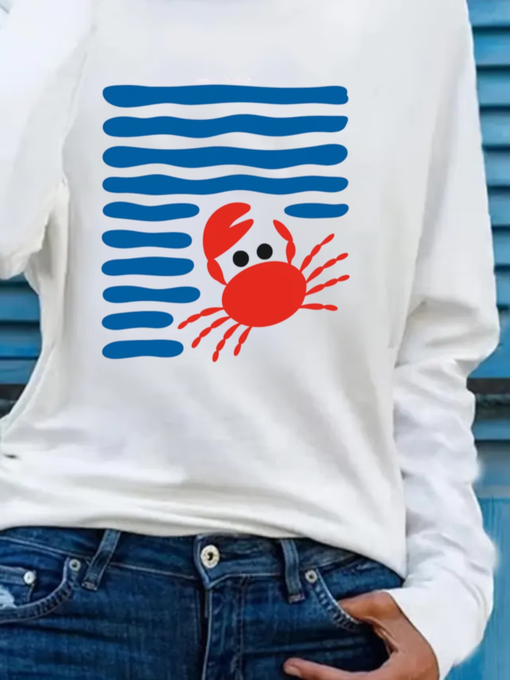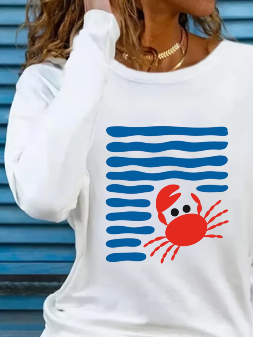 Women's Long Sleeve T-shirt Spring/Fall White Striped Printing Jersey Crew Neck Daily Going Out Casual Top