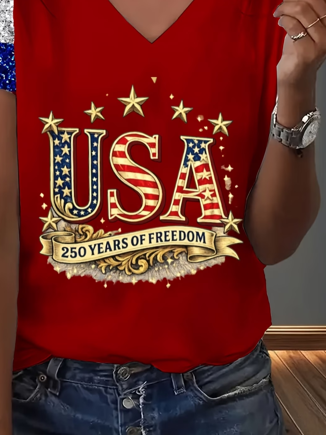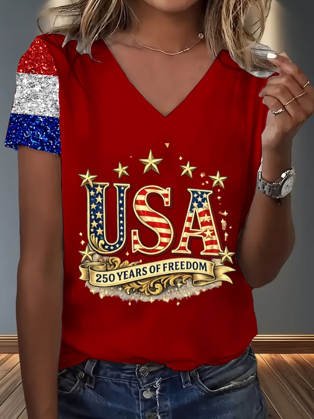 Women's Short Sleeve T-shirt Summer Red America Flag Jersey V Neck Holiday Going Out Casual Top